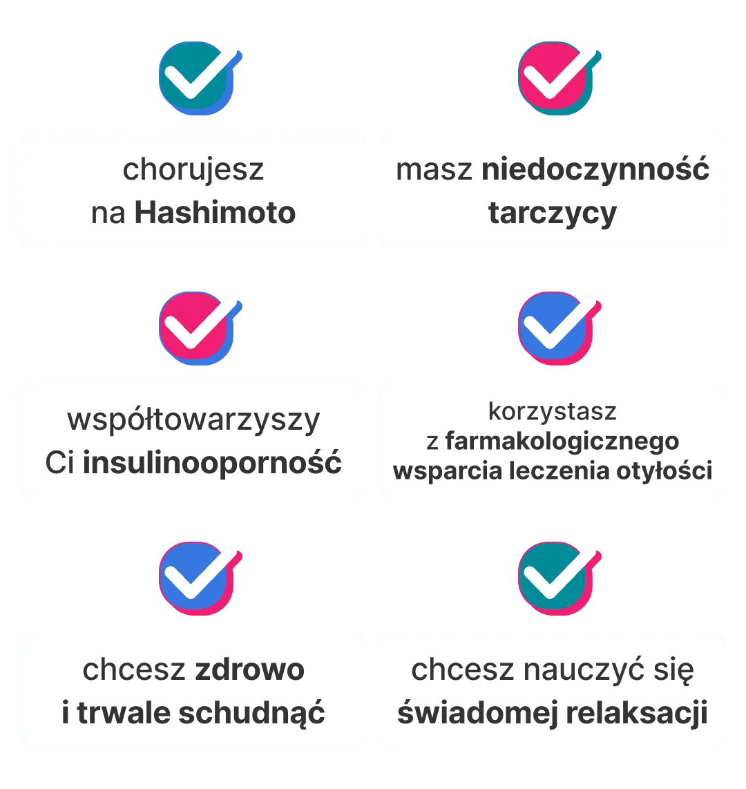 • ・dla osób z niedoczynnością tarczycy i Hashimoto korzystających z farmakologicznego leczenia otyłości