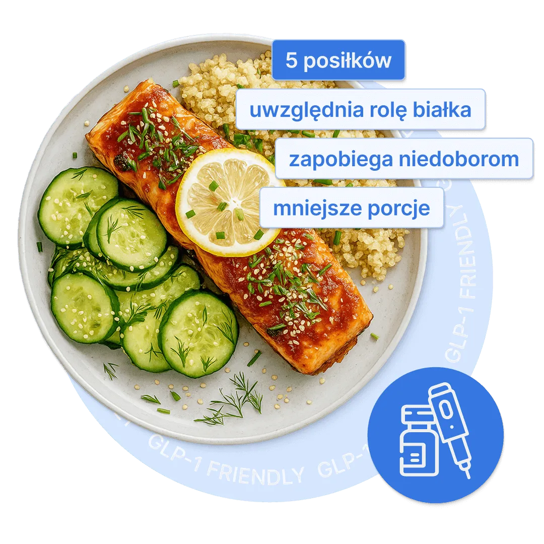 Jeżeli stosujesz analogi GLP-1  to możesz spotkać się z wyzwaniami, na które mamy skuteczne rozwiązania! Rozwój medycyny pozwala skutecznie walczyć z chorobą otyłościową, ale wymaga to dobrego przygotowania i wsparcia dietetycznego. Właśnie to znajdziesz w naszej aplikacji.